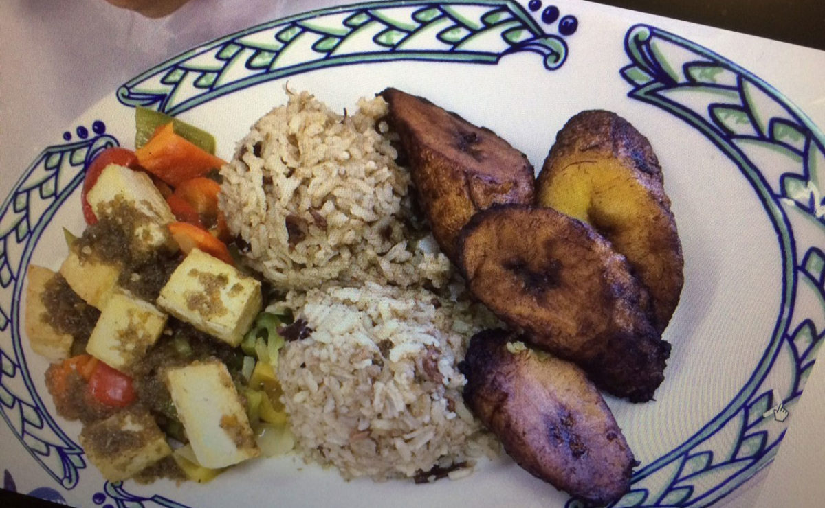 Coconut Rice, Plantains with sweet, Red Bell Pepper
